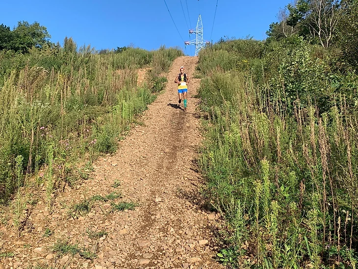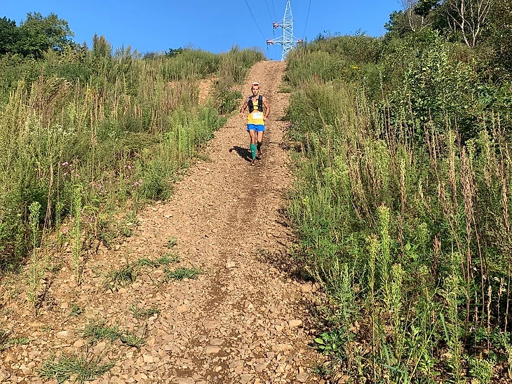 Затем, бег по грунтовой дороге с подъемом до поворота на легендарные тропы вдоль ЛЭП (линий электропередач). По дороге вдоль ЛЭП, до отметки 6 километров, бег до контрольного пункта номер 1 (8,8км, где установлено временное ограничение).