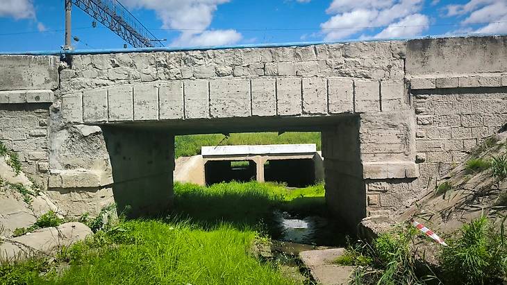 Впоследствии, продолжаем бежать до выхода на федеральную трассу. Выбегаем на асфальт и бежим под большим автомобильным мостом.