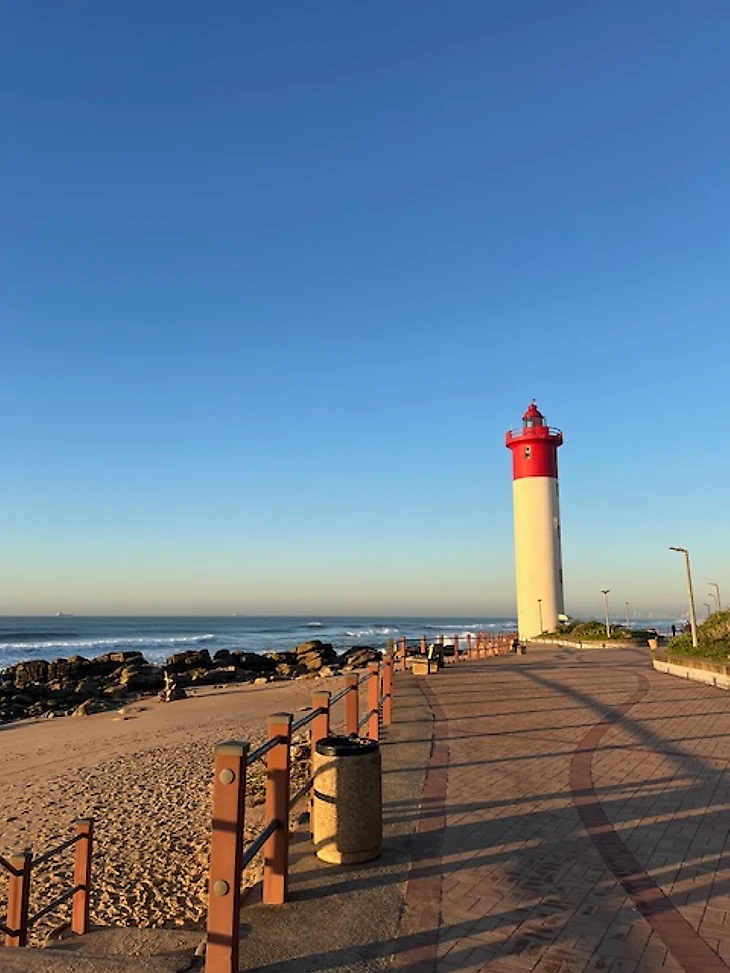 На следующий день я встал рано, в 6:30, и пошел бегать. Это была одна из моих лучших пробежек в жизни. Был рассвет, но несмотря на ранее время, достаточно много людей, которые, как и я, уже бегали. Я добежал до центра Умхланги, где был красивый маяк и пирс в виде скелета кита. Для меня было огромным счастьем бежать по променаду вдоль океана, слушать звуки разбивающихся волн, и чувствовать запах кофе, исходящего из многочисленных кофейн, которые там находились.
