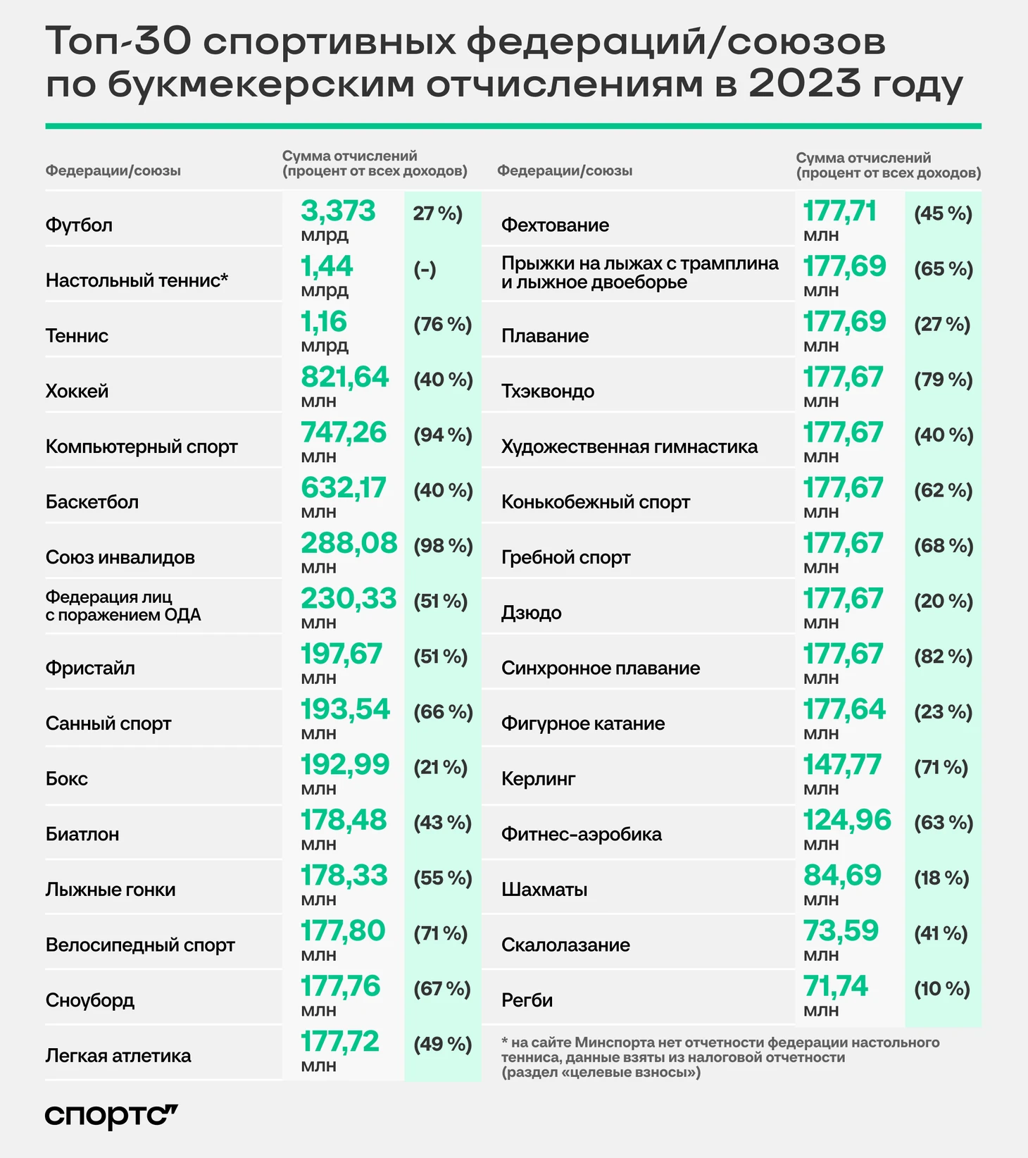 P.S. В топ-30 не увидел волейбола. Забыли включить или на него действительно ставят меньше, чем на спорт инвалидов и на скалолазание?