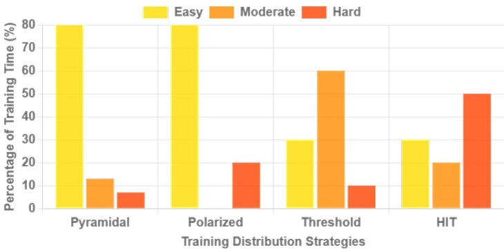 Высокоинтенсивные тренировки (ВИТ): большая часть тренировок в тяжелом режиме.