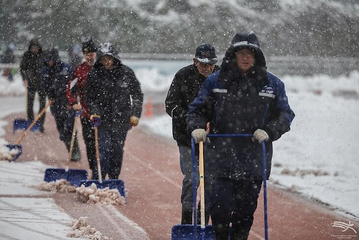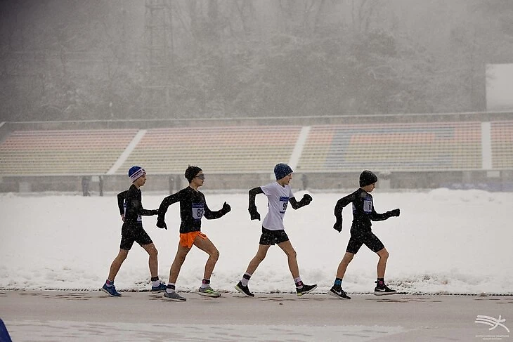 В правилах спортивной ходьбы нет ограничений по минимальной температуре проведения соревнований (легкая атлетика – летний вид спорта, так что там больше про пункты питания и освежения). Стадион расчистили, так что судейская коллегия разрешила провести соревнования.