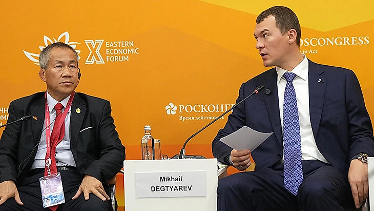 Михаил Дегтярев провел продуктивный день на Восточном экономическом форуме: давал интервью и выступал на лектории.