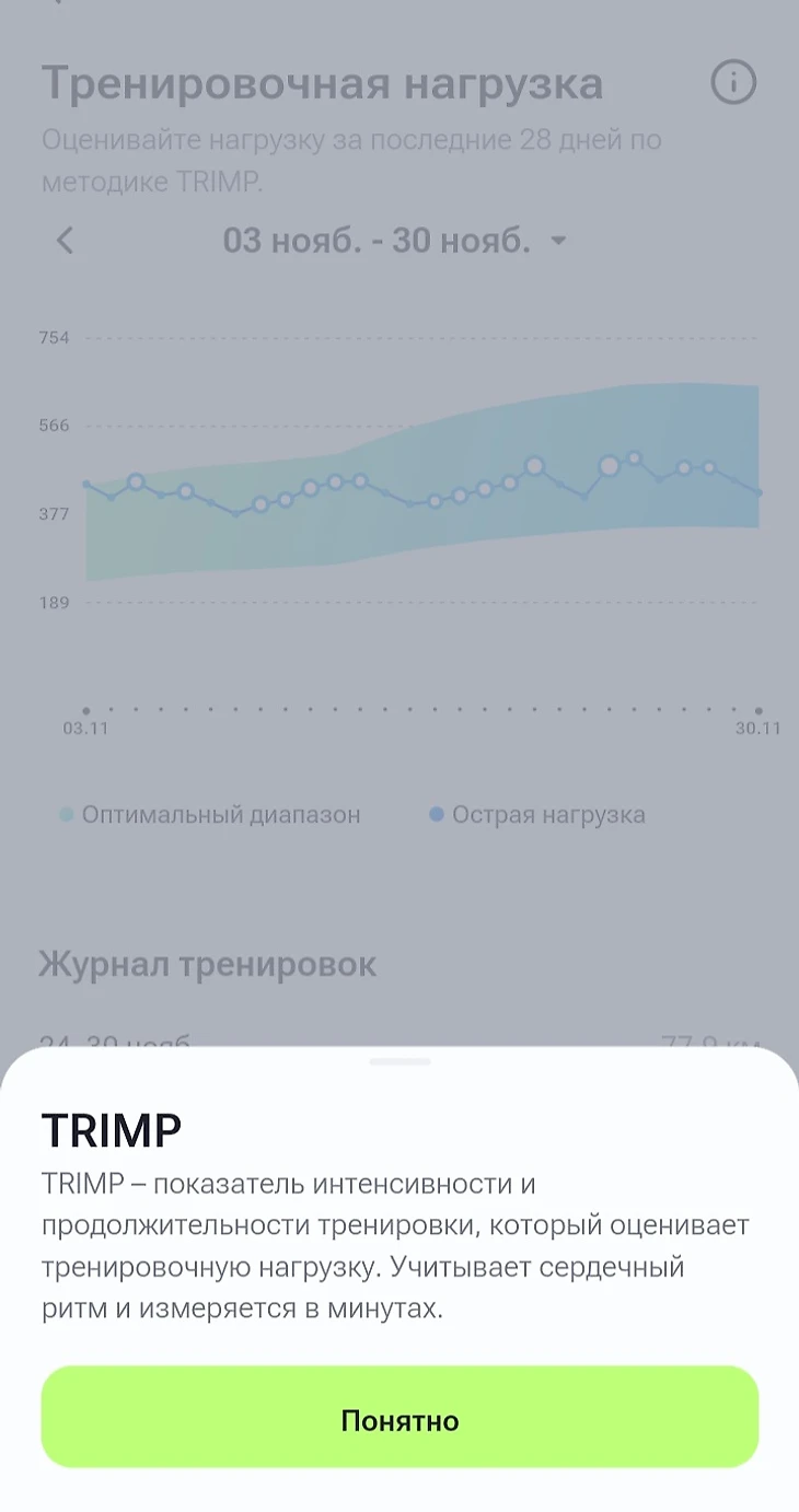 В целом, интерфейс у приложения удобный и понятный, легко отслеживать прогресс за выполненные тренировки.