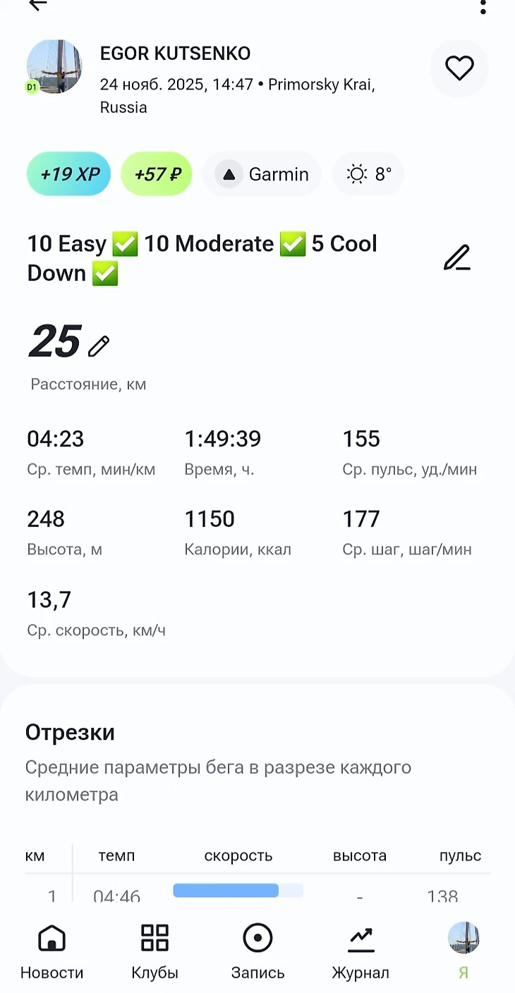 Заметил, что большее преимущество, то есть больше количество ХР за тренировку, получают «беговые новички», у которых пульс зашкаливает на большинстве тренировок. Поэтому новичкам в этом приложении очень понравится. И это прекрасно, ведь вовлечение людей в Бег - это Благое Дело, особенно в сочетании с функциональным разнообразием и перспективами приложения. Мне, как человеку у которого пульс на обычных кроссах низкий, а чтобы достичь высокого надо постараться, предстоит долгий и увлекательный путь достижения новых уровней/грейдов.