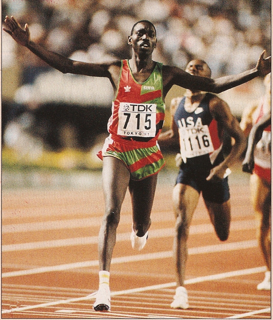 Двукратным чемпионом мира, но в помещениях был и Пол Эренг, который сумел выиграть и золото Олимпийских игр в Сеуле-1988, хотя выходец из американского студенческого спорта никем не рассматривался в качестве претендента на медали. Но если большинство кенийских атлетов блистали короткие промежутки времени, то Уилфред Кипкембой Бунгей сохранял спортивную форму на протяжении многих сезонов, в чём ему помогали солнечные очки и спринтерский комбинезон, в которых он частенько выходил на старт. В 2001 году он стал вторым на Чемпионате мира в Эдмонтоне, в 2002-2003 гг. он занимал первую строчку рейтинга в беге на 800 м, а его результат, позволяет ему быть в числе 10 лучших спортсменов в истории этой дисциплины. В 2006 году он победил на Чемпионате мира в закрытых помещениях, а в 2008 добился наивысшего достижения, выиграв Олимпиаду в Пекине. Однако звание лучшего среди кенийских бегунов мы отдаём Дэвиду Рудише.