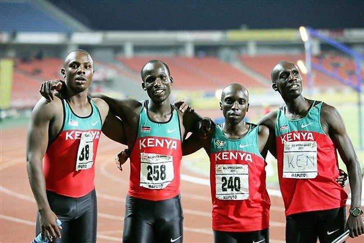 На фото - кенийские спринтеры, выигравшие эстафету 4*400 м.