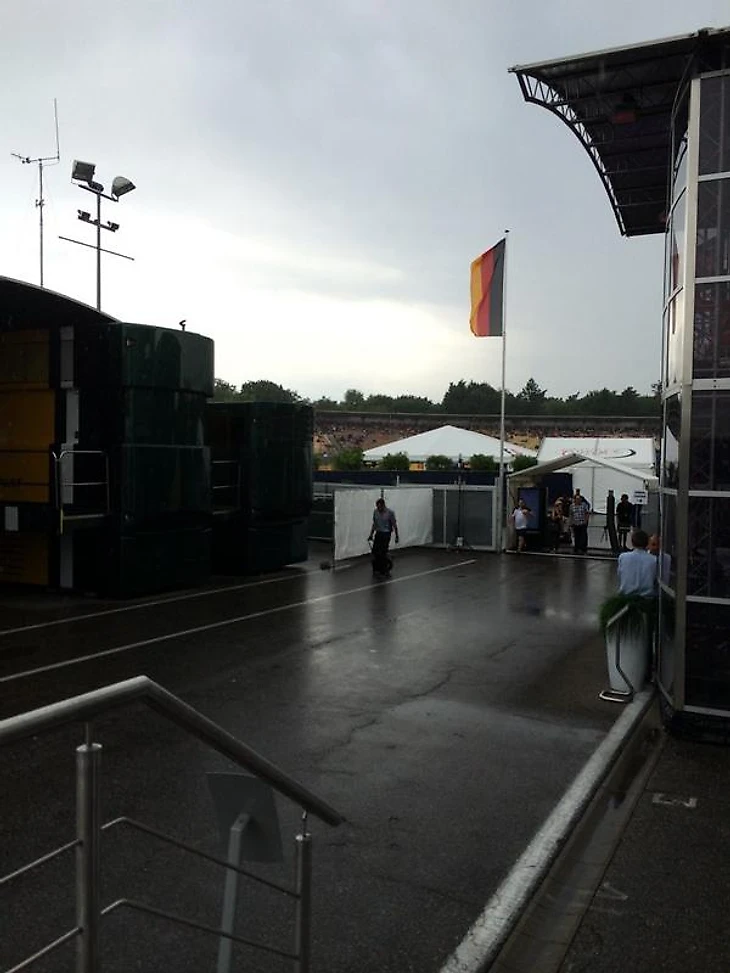 Прогнозы синоптиков, обещавших дождь накануне, подтвердились. За четыре до старта Гран-при Германии в Хоккенхайме пошел сильный ливень.