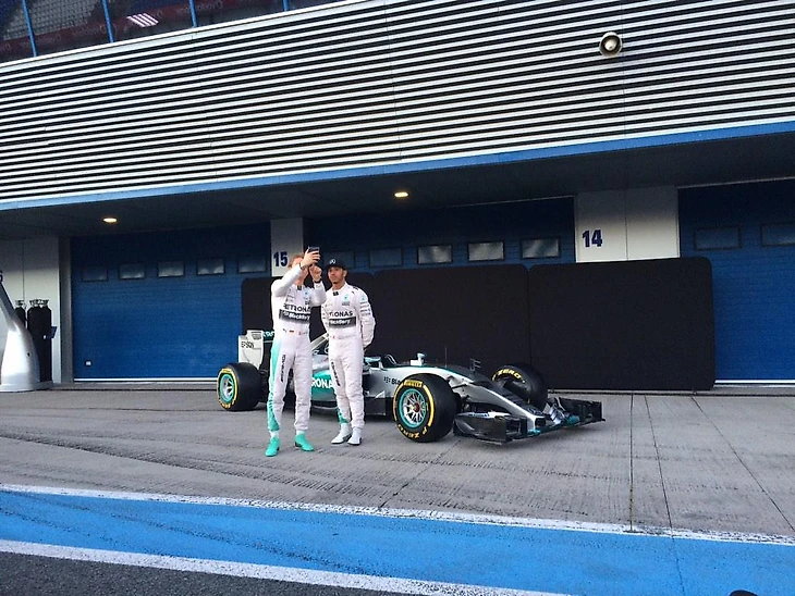 За 40 минут до начала первого дня зимних тестов в Хересе «Мерседес» провел официальную презентацию машины W06, изображения которой были опубликованы несколько дней назад в твиттере.