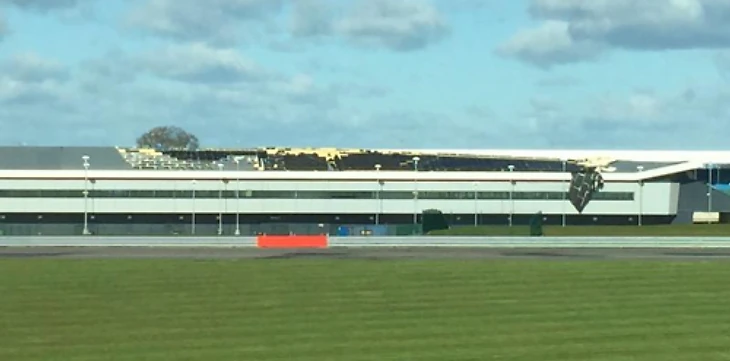 Пит-комплекс «Крыло» на трассе в Сильверстоуне получил значительные повреждения в результате урагана накануне, в понедельник, сообщает в своем блоге Джо Сейвард.