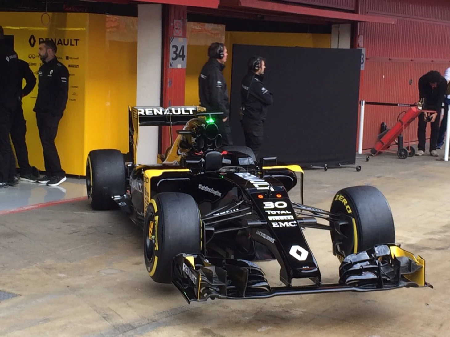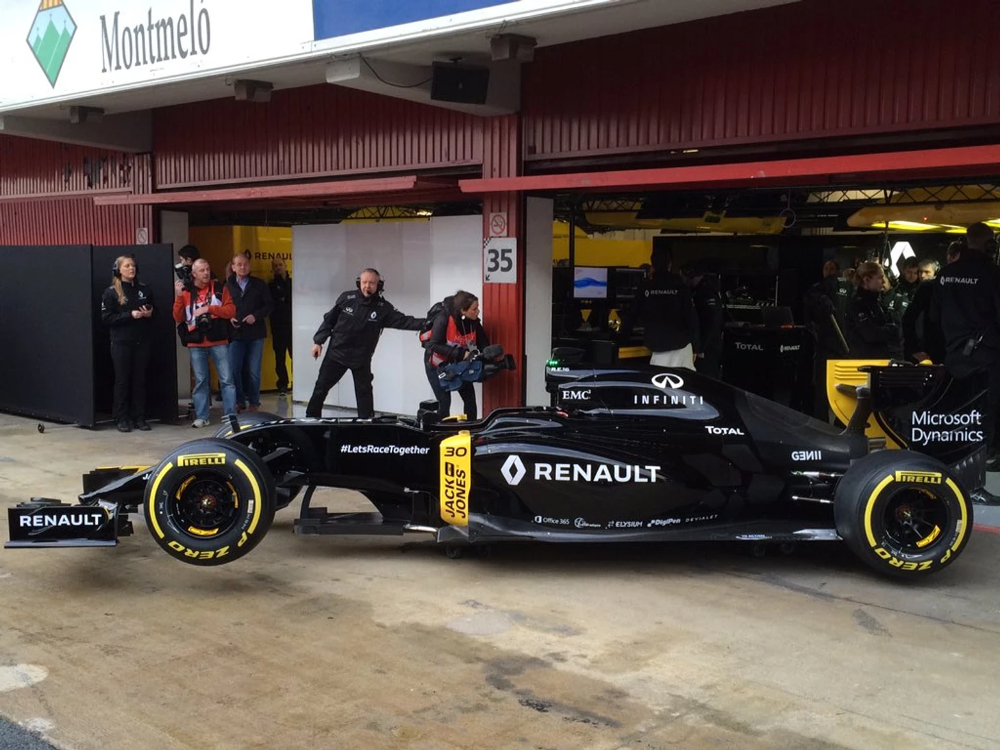 В первый день предсезонных тестов в Барселоне «Рено» представила новый болид RS16, на котором в сезоне-2016 выступят Кевин Магнуссен и Джолион Палмер.