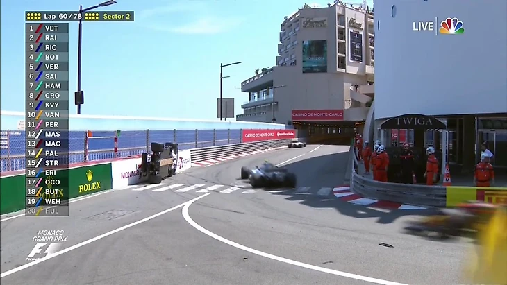 В результате столкновения в повороте перед въездом в тоннель болид Верляйна бросило на заграждение и машина перевернулась, встав на бок. Инцидент закончился сходом с дистанции обоих гонщиков.
