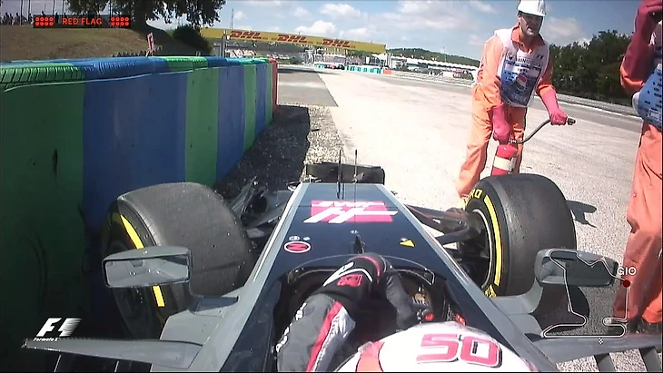 Гонщик молодежной программы «Феррари» Антонио Джовинацци, получивший шанс поработать с командой «Хаас», разбил болид в первой практике перед Гран-при Венгрии.