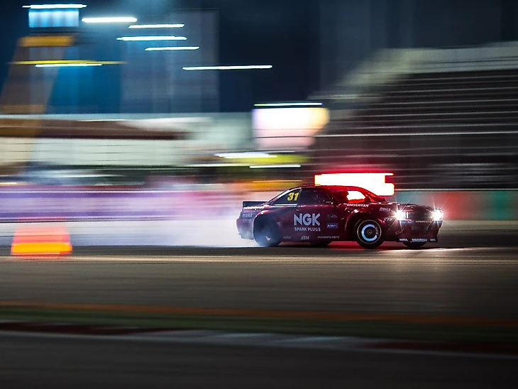 Особенностью «Кубка чемпионов» стал вечерний дрифт и выступления под светом прожекторов: траекторию движения обозначили светящиеся оранжевые конусы, а машины участников оснастили подсветкой.
