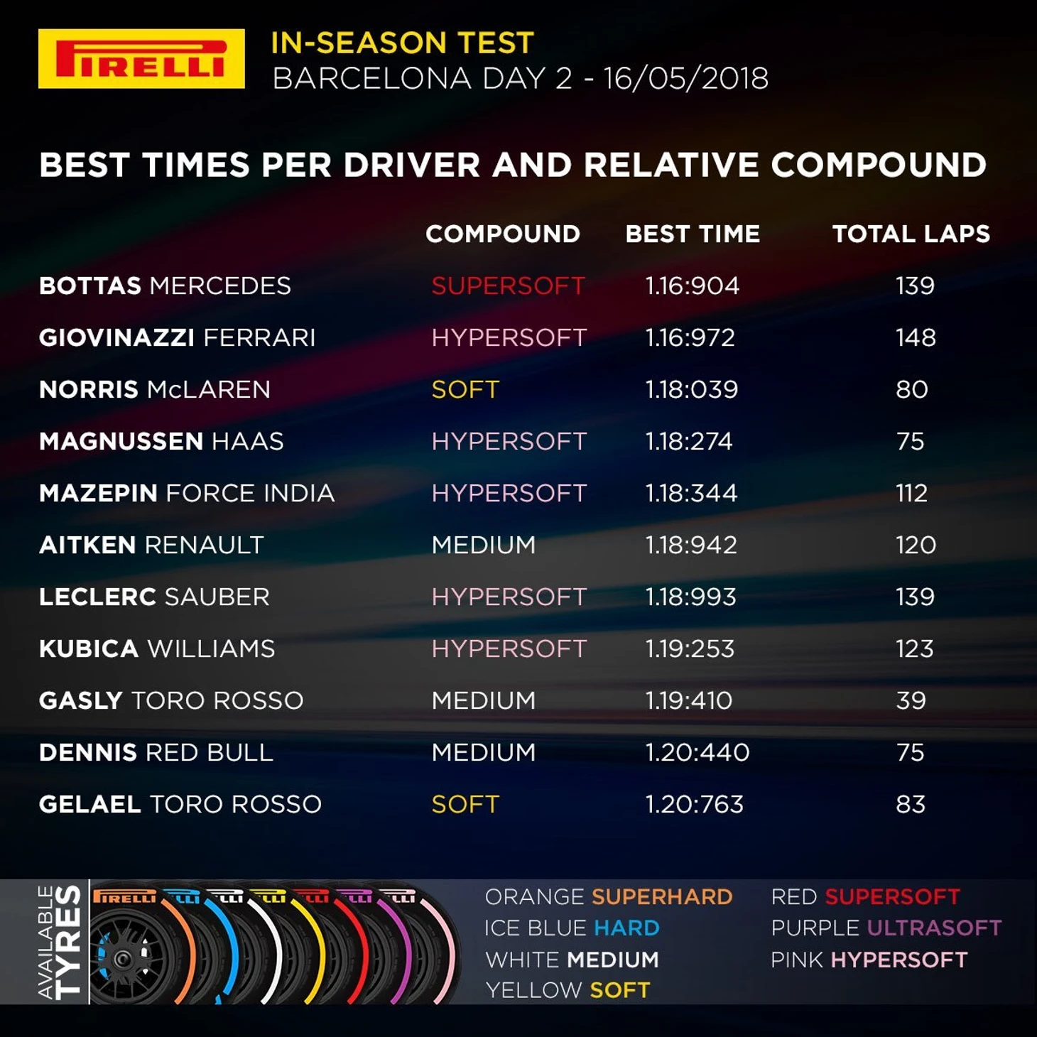 Тесты. Барселона. Боттас стал лучшим во второй день, Джовинацци – второй, Норрис – третий, Мазепин – 5-й
