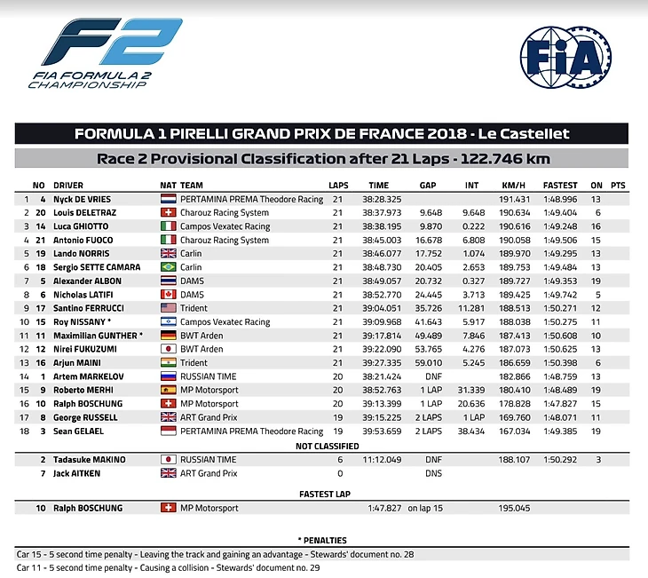 Формула-2. Франция. Де Врис выиграл воскресную гонку, Маркелов сошел