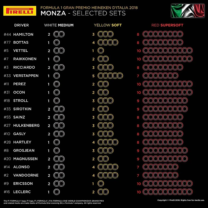 Шинный поставщик в «Формуле-1», компания «Пирелли», объявила о выборе командами покрышек на Гран-при Бельгии и Италии.