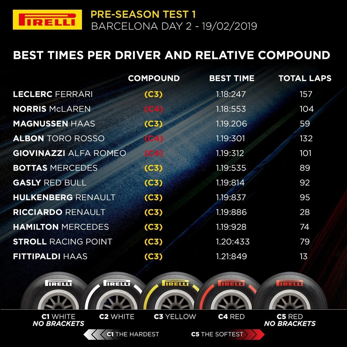 Тесты. Барселона. 2-й день. Леклер показал лучшее время, Норрис – второй, Магнуссен – третий