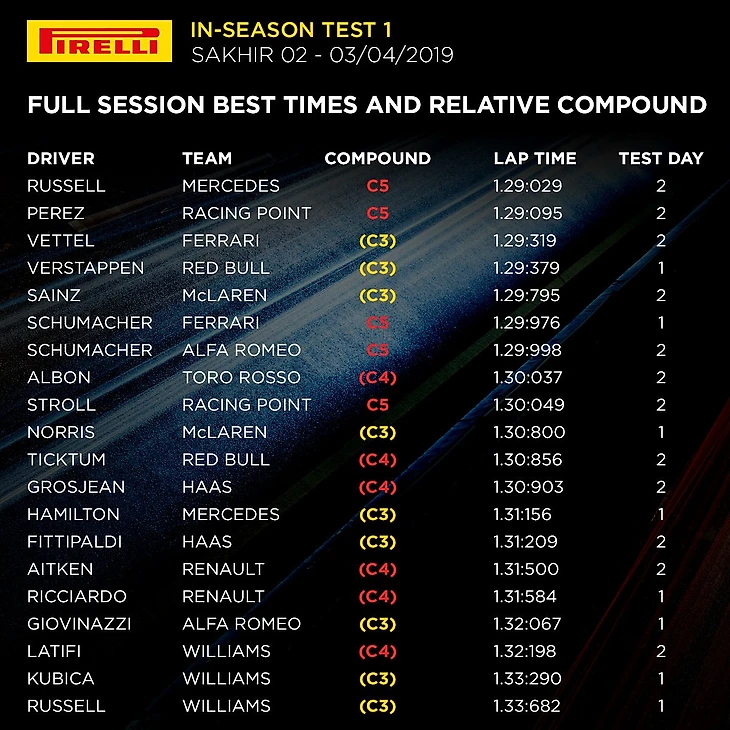Тесты. Бахрейн. 2-й день. Расселл показал лучшее время, Квят – 5-й, Шумахер – 6-й