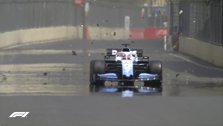 Люк на трассе Гран-при Азербайджана повредил болид пилота «Уильямса» Джорджа Расселла на на стартовых минутах первой пятничной практики. Днище «Уильямса» соприкоснулось с недостаточно закрепленным люком, и британцу пришлось остановиться на трассе. В результате инцидента практика была остановлена красными флагами.