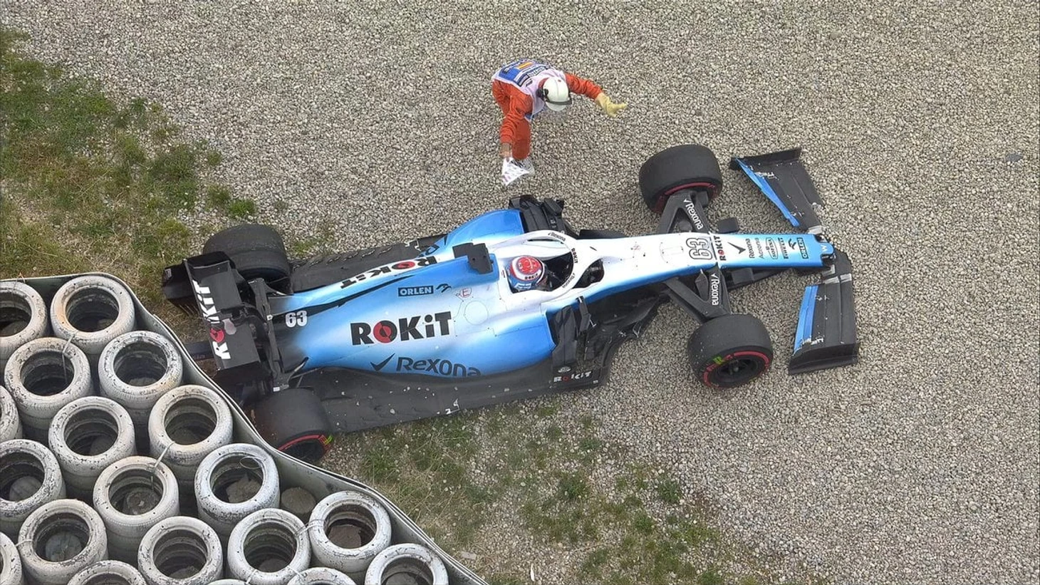 Пилот «Уильямса» Джордж Расселл попал в аварию за несколько минут до окончания третьей сессии свободных заездов Гран-при Испании. «Уильямс» вылетел с трассы и ударился о барьеры. Практика была остановлена красными флагами.