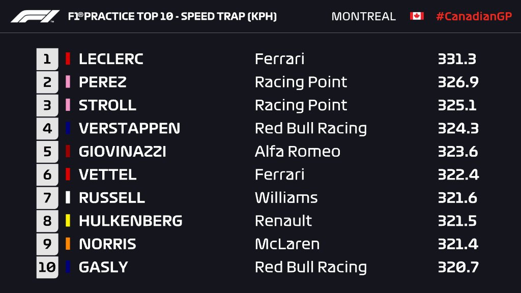 Гран-при Канады. 1-я практика. Хэмилтон – первый, Боттас – второй, Леклер – третий, Квят – 18-й