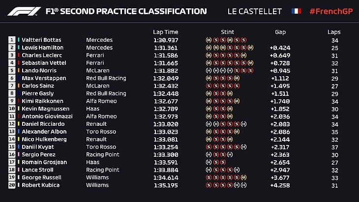 Гран-при Франции. 2-я практика. Боттас– первый, Хэмилтон – второй, Леклер – третий, Квят – 15-й