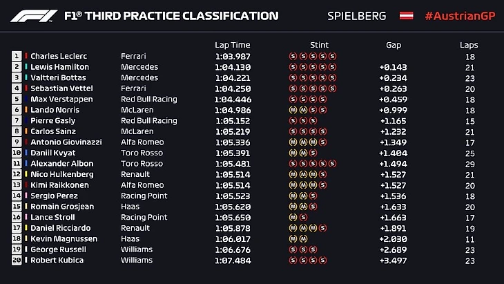 Гран-при Австрии. 3-я практика. Леклер – первый, Хэмилтон – второй, Боттас – третий, Квят – 10-й