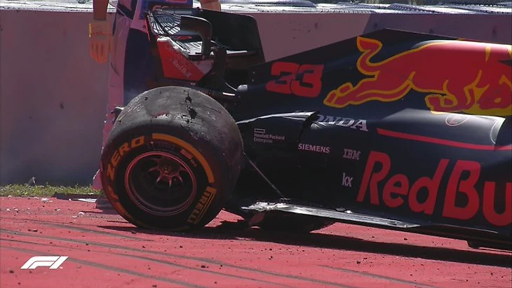 Ферстаппен потерял контроль над машиной в предпоследнем повороте и врезался в барьеры задней частью болида. После аварии сессия была приостановлена красными флагами.