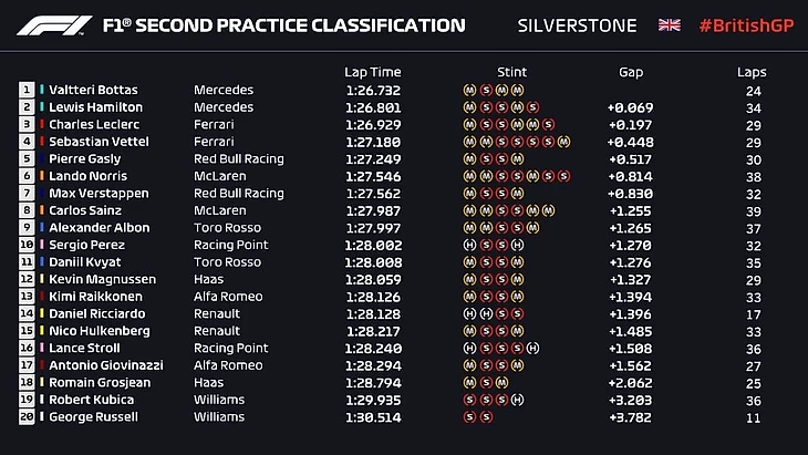 Гран-при Великобритании. 2-я практика. Боттас – первый, Хэмилтон – второй, Леклер – третий, Квят – 11-й