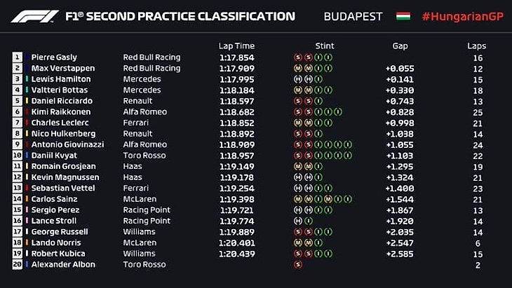Гран-при Венгрии-2019. 2-я практика. Гасли – первый, Ферстаппен – второй, Хэмилтон – третий, Квят – 10-й