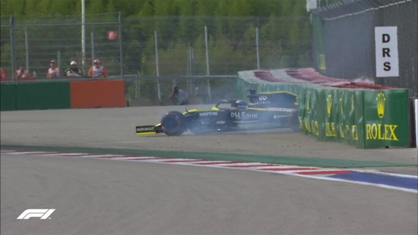 Пилот «Рено» Даниэль Риккардо влетел в барьеры на последних минутах первой сессии свободных заездов перед Гран-при России. Австралиец ударился задней частью машины и повредил заднее антикрыло.