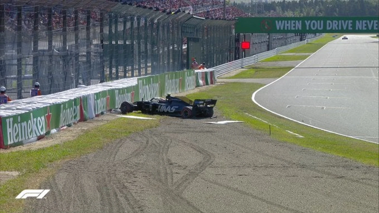 Пилот «Хааса» Кевин Магнуссен врезался в барьеры в первом сегменте квалификации к Гран-при Японии.