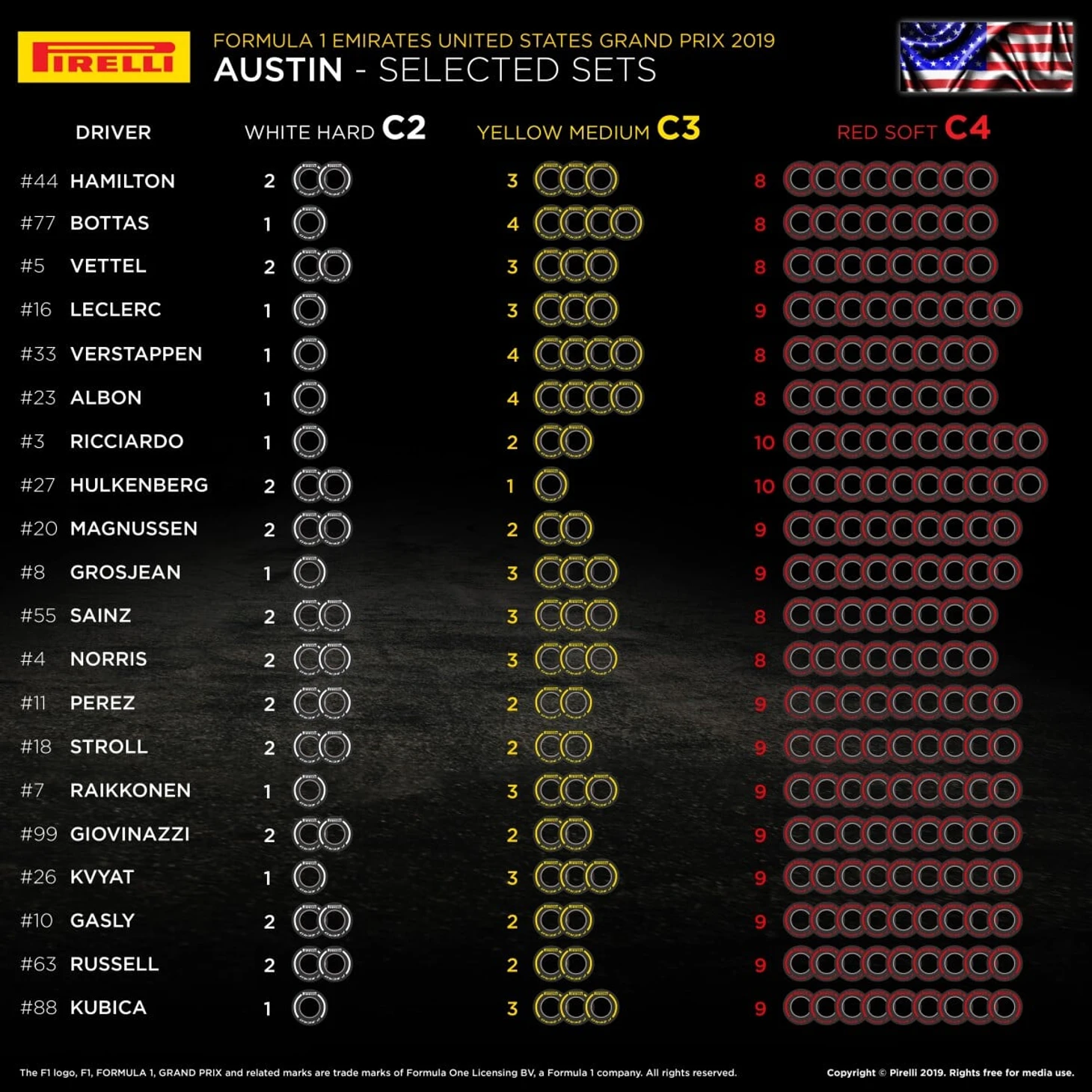 Выбор шин на Гран-при США (в таблице указано количество комплектов на гонщика)