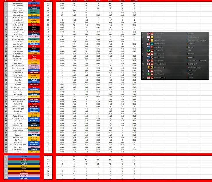 Расселлу удалось выиграть виртуальный Гран-при Азербайджана и обойти в общем зачете Шарля Леклера, который теперь занимает вторую позицию (98 очков). На третьей позиции расположился Алекс Албон (89 очков). Замыкают топ-5 два пилота «Мерседеса» – Эстебан Гутьеррес и Стоффель Вандорн.