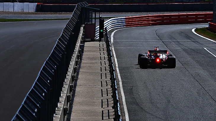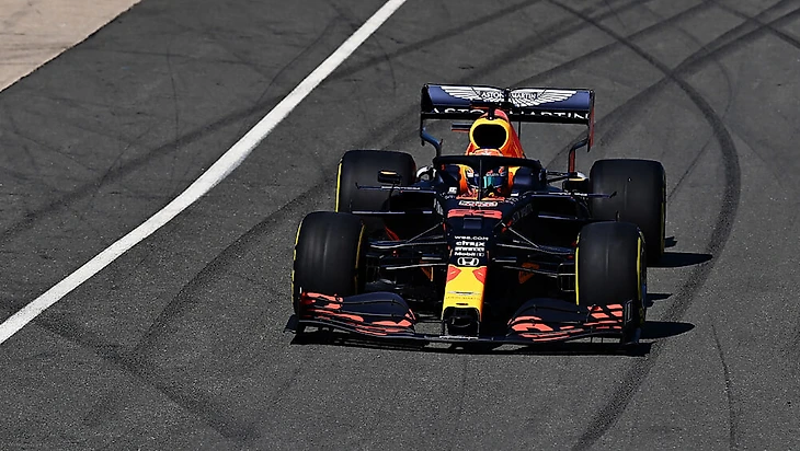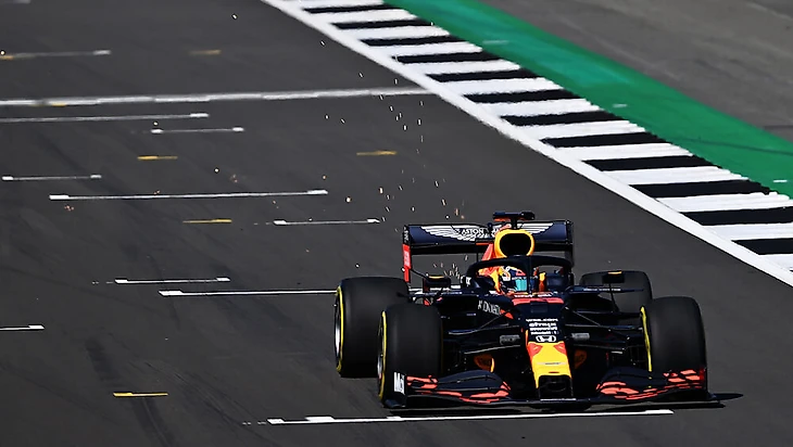 Пилот «Ред Булл» Алекс Албон тестирует машину 2020 года в Сильверстоуне.