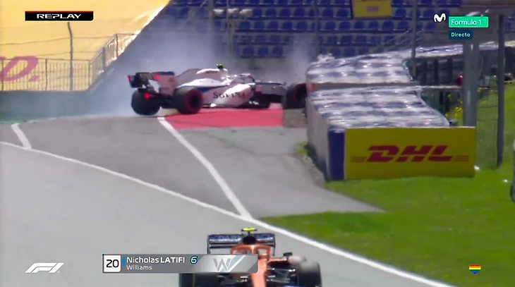 Пилот «Уильямса» Николя Латифи попал в аварию по ходу третьей сессии свободных заездов перед Гран-при Австрии.