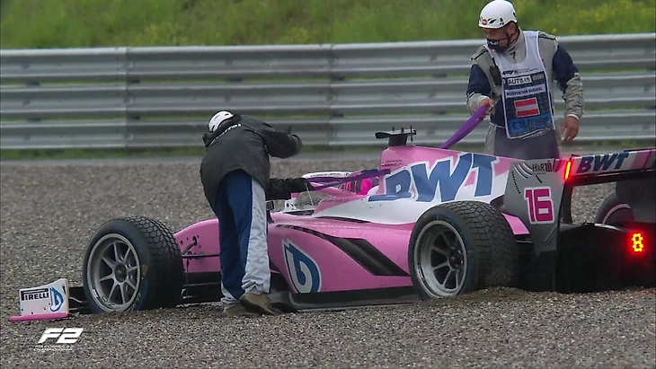 Пилот «ХВА» Артем Маркелов вылетел с трассы на прогревочных кругах перед первой гонкой «Формулы-2» в Штирии и был вынужден сойти.