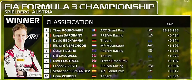 Пилот «АРТ» Тео Пуршер одержал победу во второй гонке «Формулы-3» в Штирии.