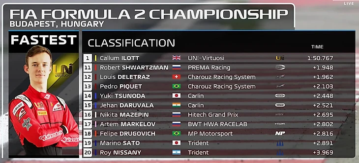 Формула-2. Венгрия. Айлотт выиграл дождевую квалификацию, Гьотто – второй, Чжоу – третий, Шварцман – 11-й