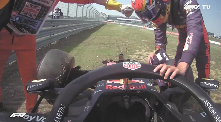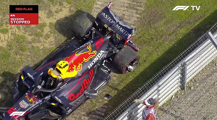 Гонщик вылетел с трассы в повороте «Стоув» и врезался в барьеры. Сессия была прервана красными флагами.
