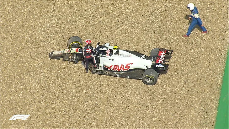 Гонщик «Хааса» сошел с дистанции, представитель «Ред Булл» продолжил заезд на 12-м месте. На трассу выехала машина безопасности.