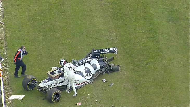 Пилот «Альфа Таури» Даниил Квят попал в серьезную аварию на 13-м круге гонки в Сильверстоуне.