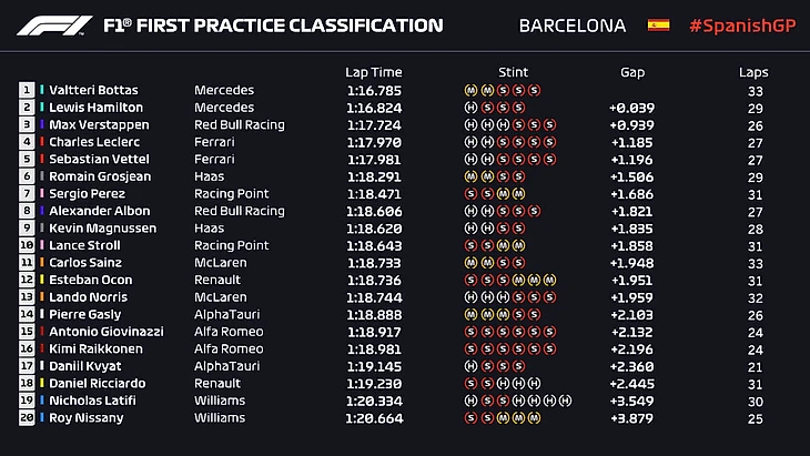 Гран-при Испании-2020. 1-я практика. Боттас – первый, Хэмилтон – второй, Ферстаппен – третий, Квят – 17-й