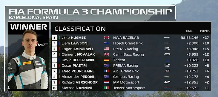 Формула-3. Испания. Хьюз выиграл первую гонку, Смоляр – 11-й