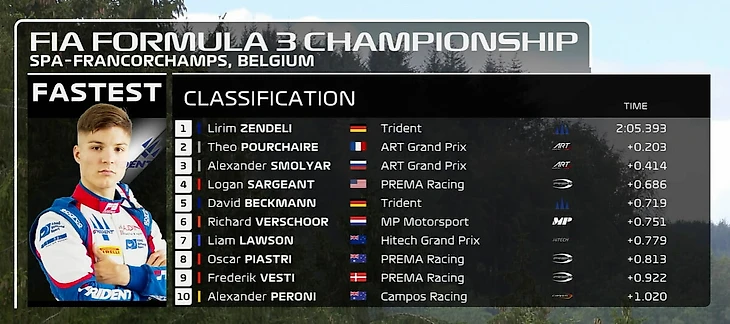 Формула-3. Бельгия. Зендели выиграл поул, Смоляр – третий, Белов разбил болид
