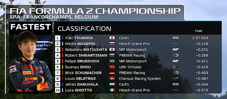 Формула-2. Бельгия. Цунода выиграл поул, Мазепин – второй, Мацусита – третий, Шварцман – четвертый