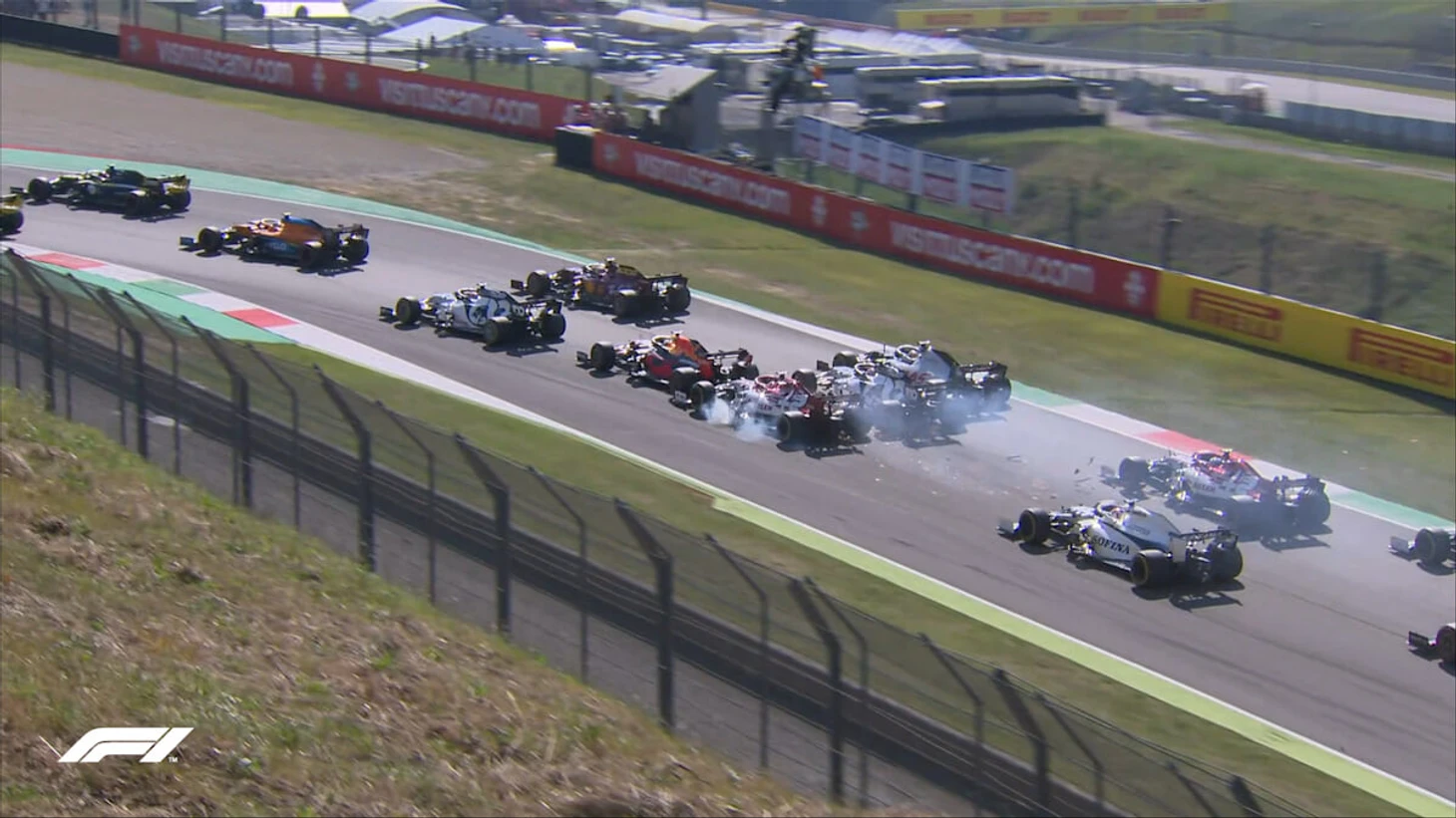 В инцидентах также приняли участие Карлос Сайнс, Себастьян Феттель, Кими Райкконен, Ромен Грожан и Пьер Гасли – последний также сошел.