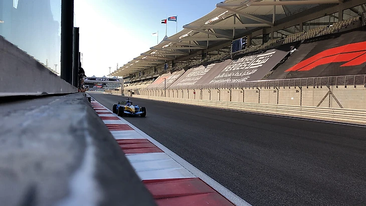 Двукратный чемпион мира Фернандо Алонсо сел за руль своего чемпионского болида «Рено» 2005 года в Абу-Даби.