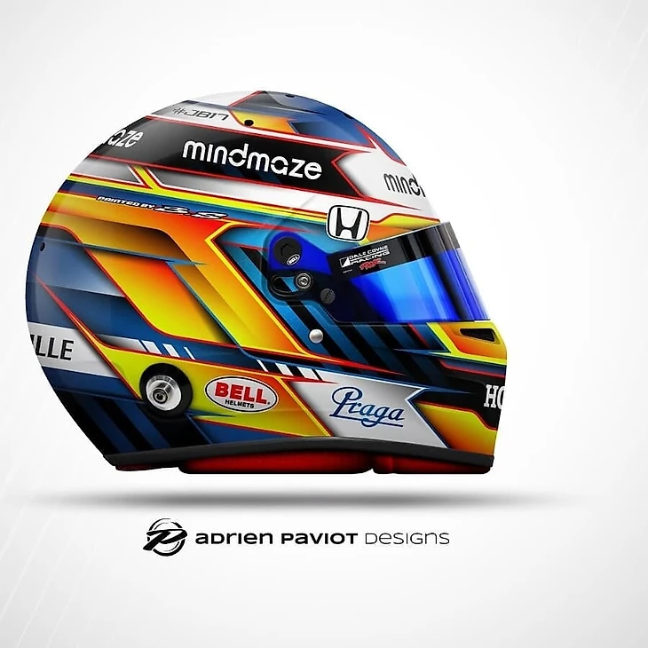 Индикар. Грожан представил шлем с гонщиком в образе феникса